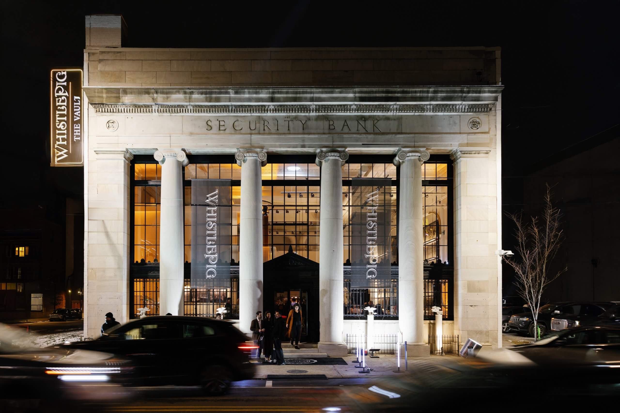 The newest thing in Louisville worth your time. WhistlePig, a Vermont rye distillery, spent 2025 restoring the original 1911 Louisville Security Bank and opened it as a tasting room and cocktail bar. The building has 24-foot ceilings, Tennessee marble, Greek Revival limestone, and a preserved vault that now houses WhistlePig's Boss Hog collection where safety deposit boxes used to be. The signature cocktail, the Flying Pig, is delivered to your table through a pneumatic ATM tube.